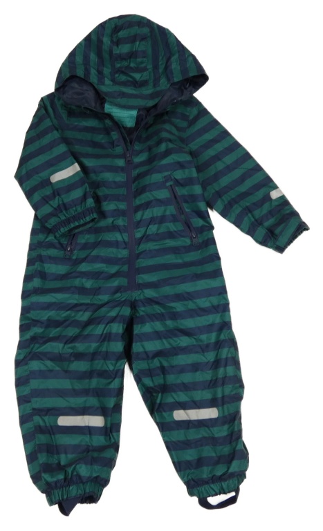Zeleno-tmavomodrá pruhovaná šusťáková jarní kombinéza s kapucí Lily & Dan