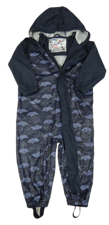 Tmavomodrá nepromokavá kombinéza s loďkami a kapucí Lupilu