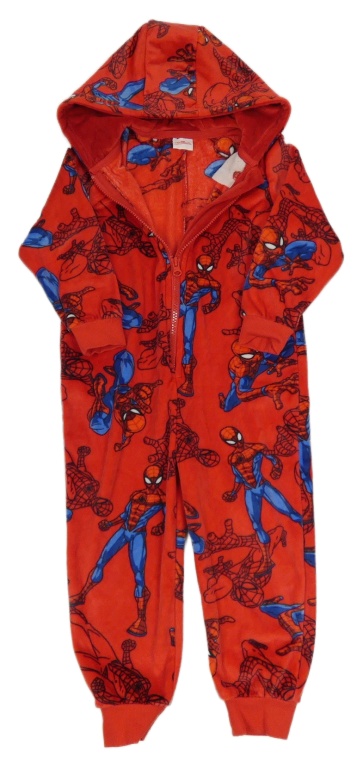 Červená plyšová kombinéza se Spidermanem a kapucí Matalan