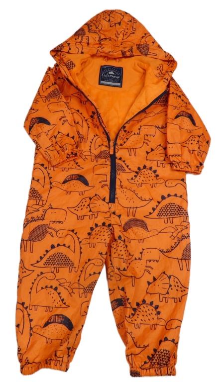 Oranžová šusťáková podšitá kombinéza s dinosaury a kapucí George