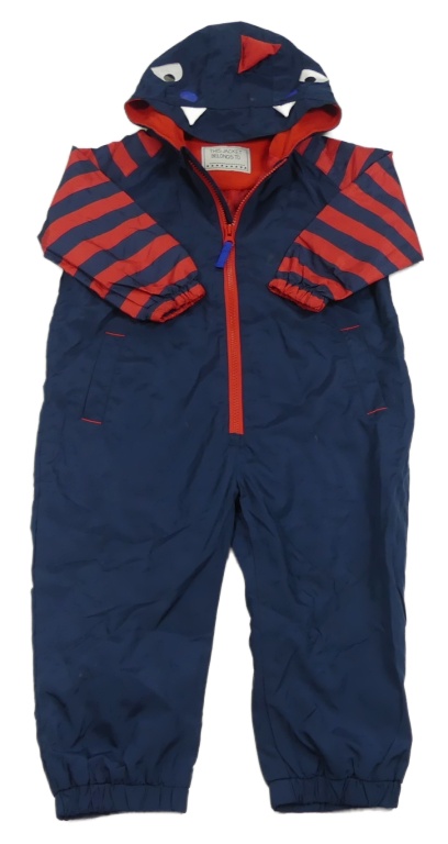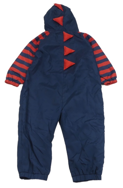 Tmavomodro-červená šusťáková podzimní kombinéza s kapucí - dinosaurus George