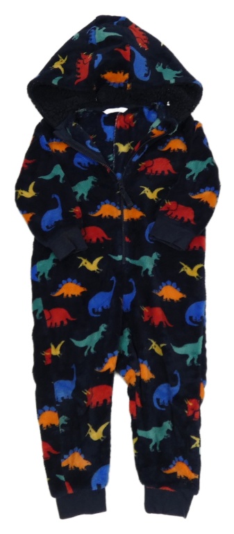 Tmavomodrá chlupatá kombinéza s dinosaury a kapucí M&S