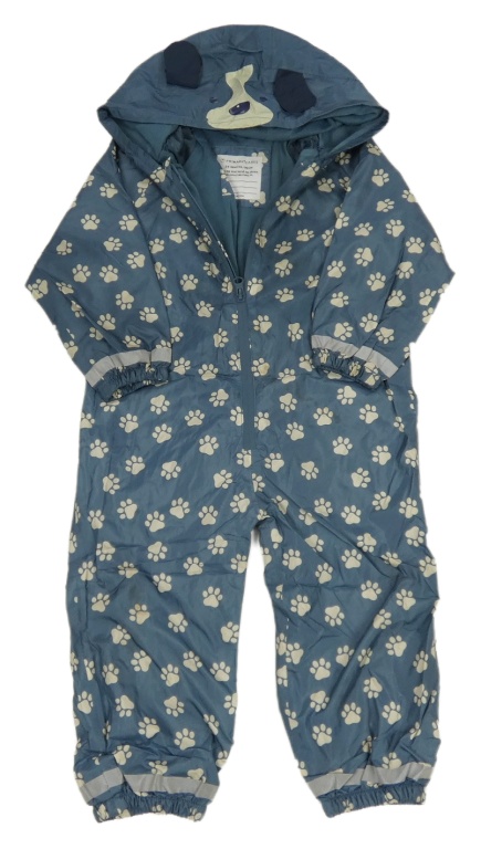 Břidlicová šusťáková podzimní kombinéza s tlapkami a kapucí - pejsek PRIMARK