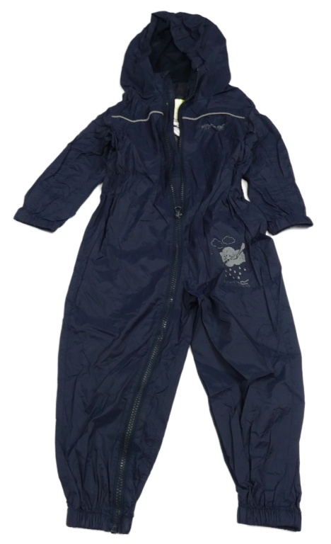 Tmavomodrá šusťáková nepromokavá funkční kombinéza s obláčky a kapucí REGATTA