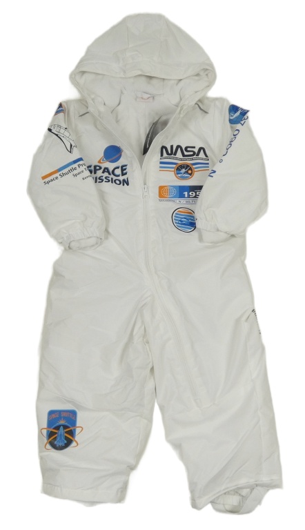 Nové- Bílá šusťáková zimní kombinéza s potiskem a kapucí