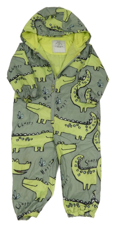 Khaki-zelená šusťáková jarní kombinéza s krokodýly a kapucí George