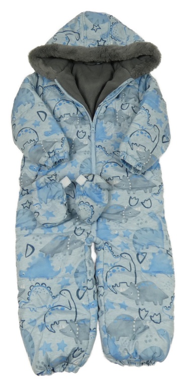 Světlemodrá šusťáková kombinéza s dinosaury a kapucí + rukavice Dunnes