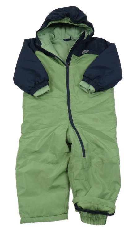 Tmavomodro-zelená šusťáková zimní kombinéza s potiskem a kapucí Lupilu