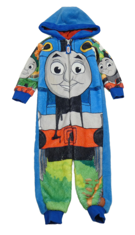 Modrá plyšová kombinéza s mašinkou Tomášem a kapucí