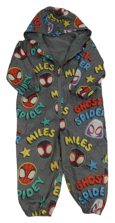 Šedá šusťáková jarní kombinéza se Spidermany a kapucí George