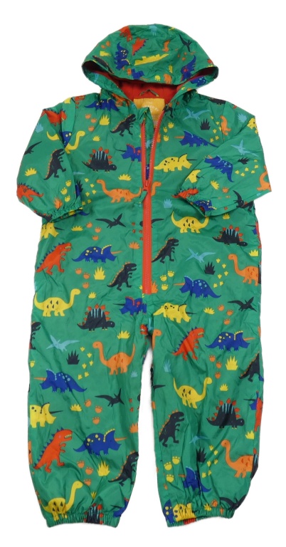 Zelená šusťáková jarní kombinéza s dinosaury a kapucí George