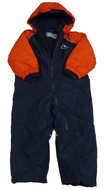 Tmavomodro-červená šusťáková zimní kombinéza s kapucí lupilu