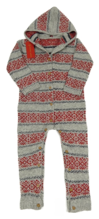 Nové - Šedo-červený vzorovaný pletený overal s kapucí M&S
