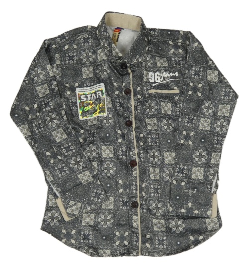 Tmavošedo-bílá vzorovaná košile s nápisy