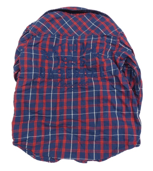 Tmavomodro-červeno-bílá kostkovaná košile s nápisy a číslem H&M