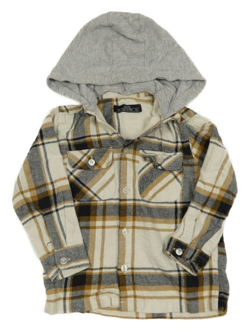 Béžovo-černo-hnědá kostkovaná košile s kapucí Matalan
