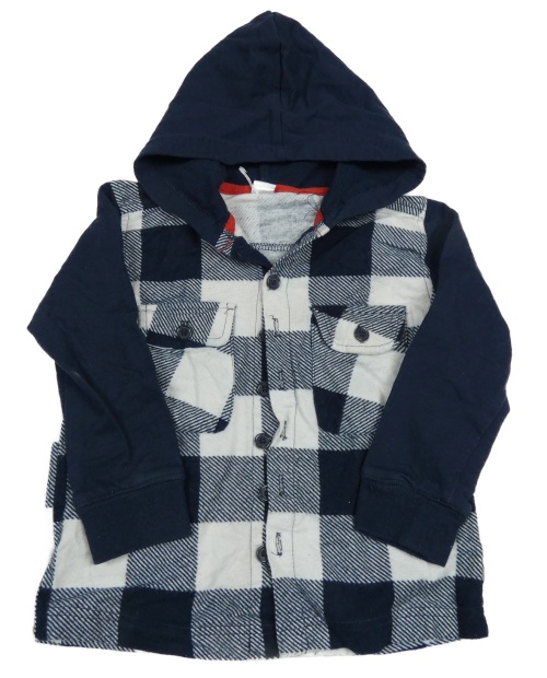 Bílo-tmavomodrá kostkovaná flanelovo/tepláková košile s kapucí