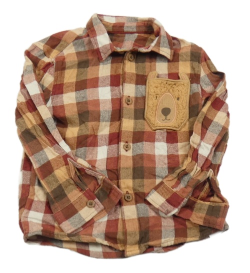 Vínovo-oranžovo-hnědá kostkovaná flanelová košile s medvědem George