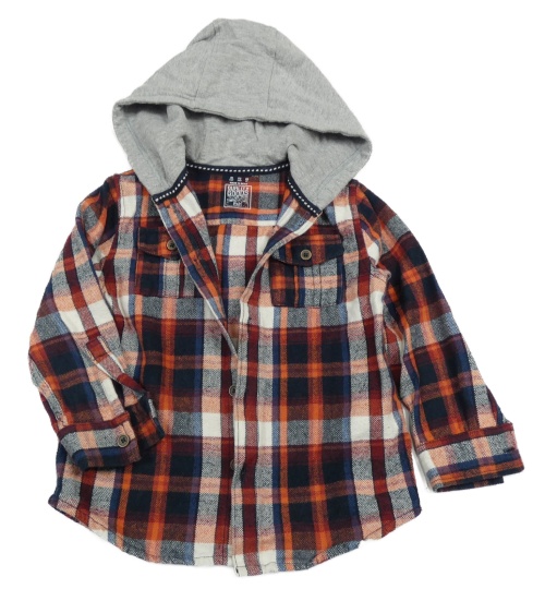 Tmavomodro-červeno-bílá kostkovaná košile s teplákovou kapucí F&F