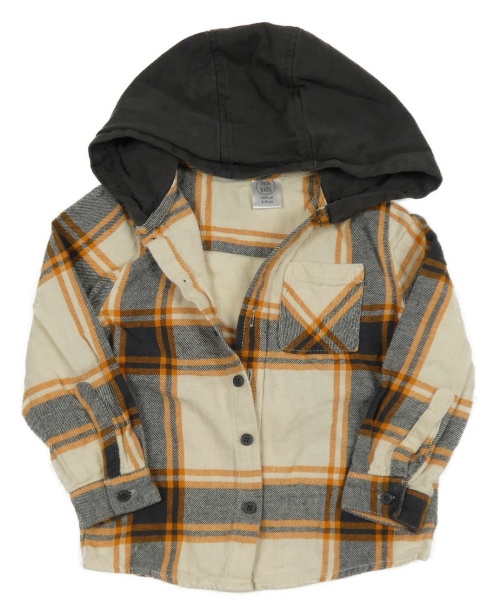 Béžovo-oranžovo-antracitová kostkovaná košile s kapucí Little kids