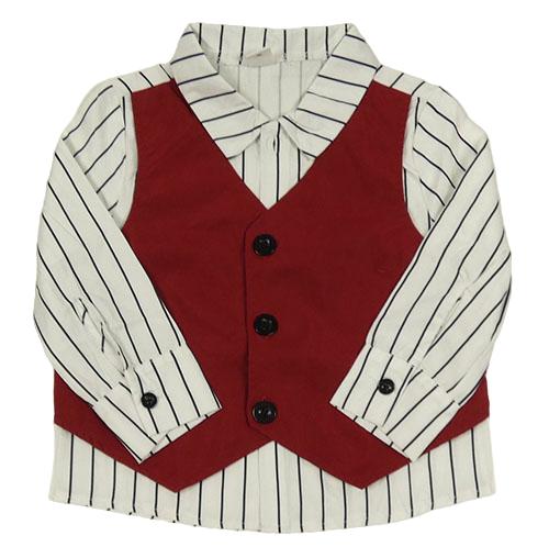 Bílo-černá pruhovaná košile s vínovou vestou Shein