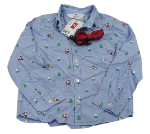 Nové - 2set - modrá košile s vánočními obrázky + červený motýlek