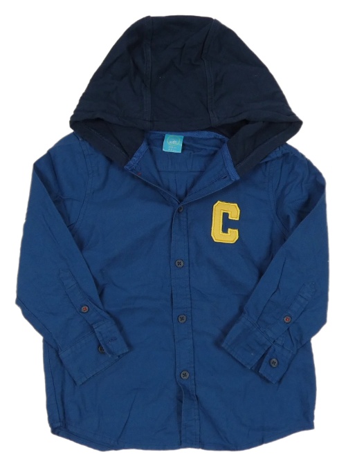Tmavomodrá košile s písmenem a teplákovou kapucí