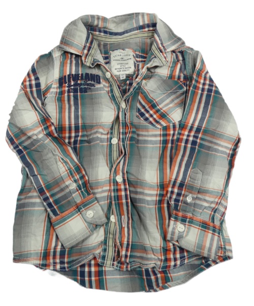Šedo-zeleno-korálová kostkovaná košle s nápisem Tom Tailor