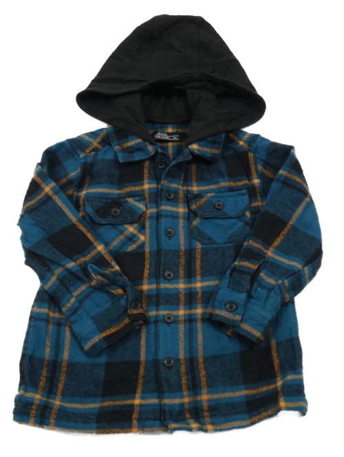 Petrolejovo-černá kostkovaná flanelová košile s kapucí Matalan