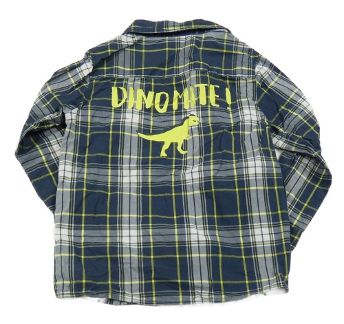Tmavomodro-limetková kostkovaná košile s dinosaurem Manguun