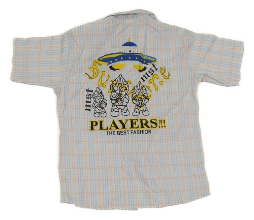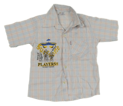 Bílo-modro-červená kostkovaná košile s potiskem