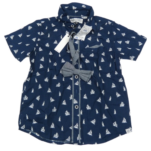Nové - 2set - Tmavomodrá košile s loďkami + melírovaný motýlek