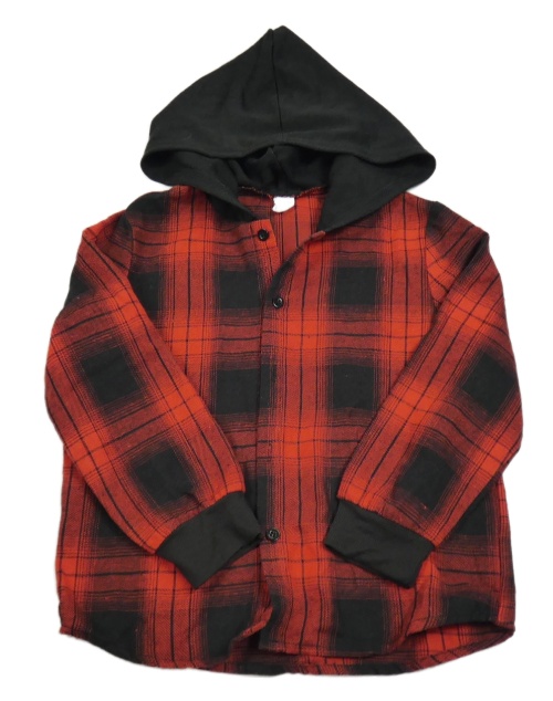 Černo-červená kostkovaná košile s kapucí Shein
