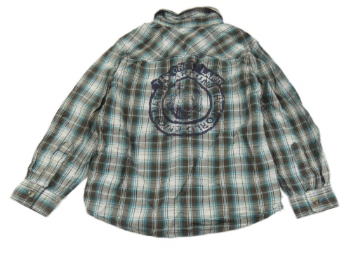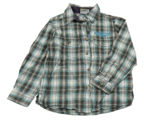 Hnědo-modro-bílá kostkovaná košile s nápisem Topolino