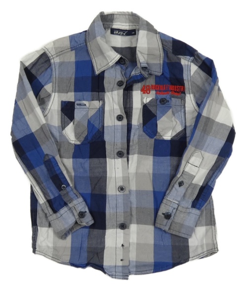 Tmavomodro-šedo-bílá kostkovaná košile s nápisem