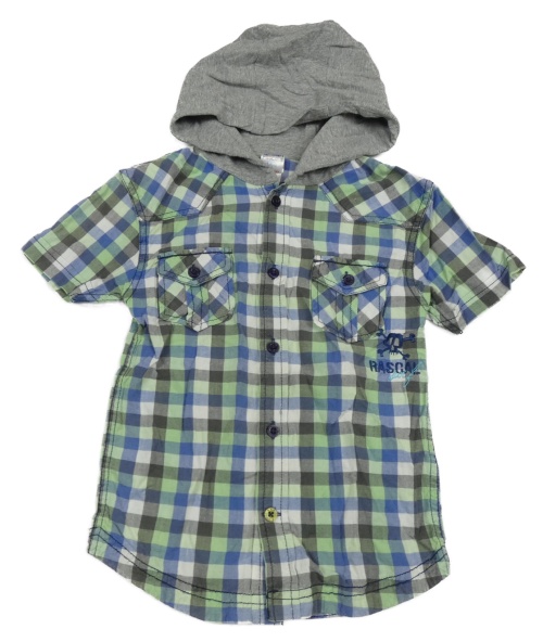 Zeleno-modro-bílo-khaki kostkovaná košile s lebkou a kapucí URBAN RASCALS