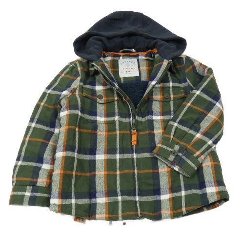 Khaki-tmavomodrá kostkovaná zateplená košilová bunda s kapucí Fat Face
