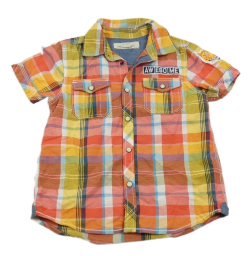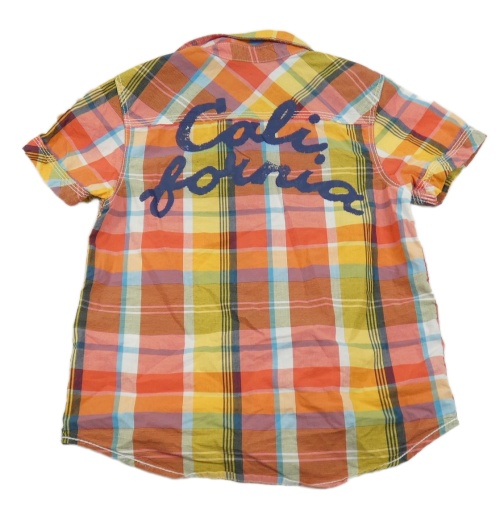 Červeno-žlutá kostkovaná košile s nápisem H&M