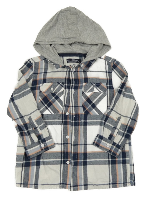 Bílo-modro-růžová kostkovaná košile s kapucí