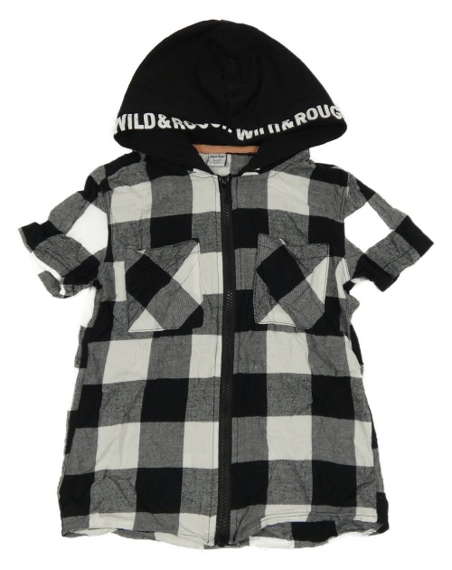 Černo-bílá kostkovaná košile s kapucí s nápisy dopodopo