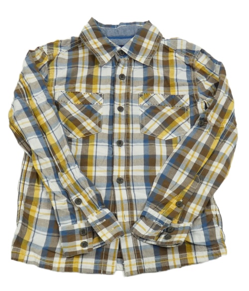 Tmavohnědo-/tmavomodro-bílo-okrová kostkovaná košile s číslem WE