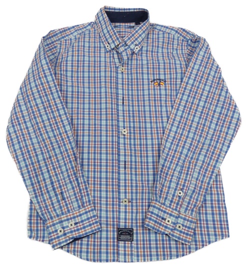 Bílo-modro-oranžová kostkovaná košile s výšivkou