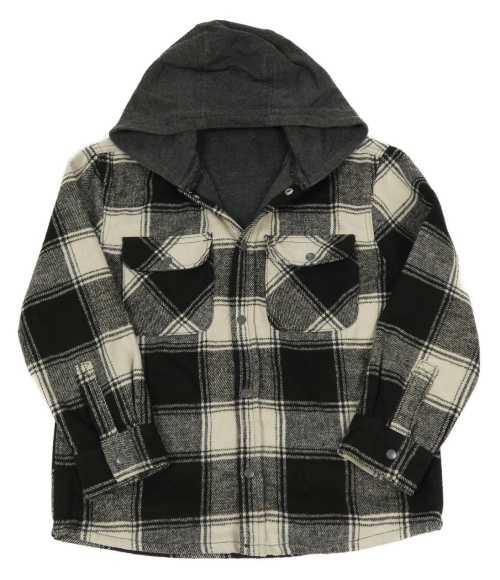 Bílo-černá kostkovaná podšitá košilová bunda s kapucí George