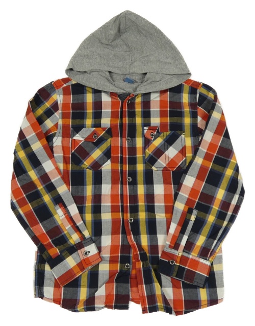 Tmavomodro-červeno-žlutá kostkovaná košile s kapucí Dopodopo