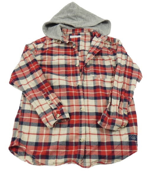 Červeno-béžová kostkovaná košile s teplákovou kapucí Zara