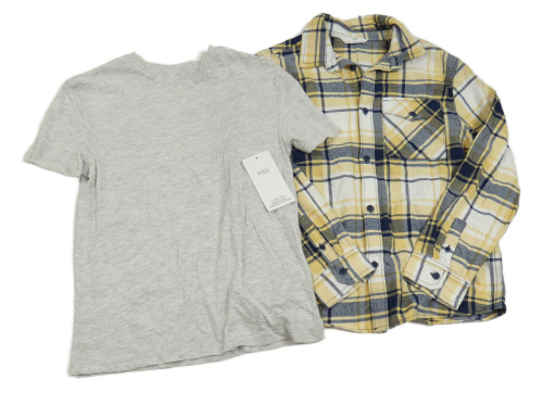 Nové- 2set- tmavomodro-bílo-žlutá kostkovaná flanelová košile+ šedé tričko M&S