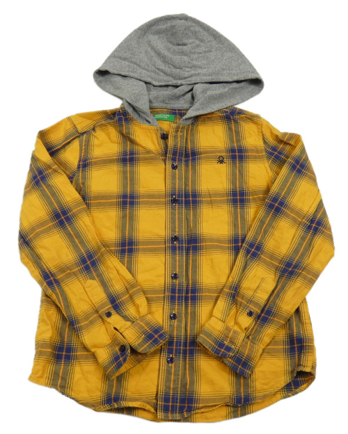 Žluto-modrá kostkovaná košile s kapucí Benetton