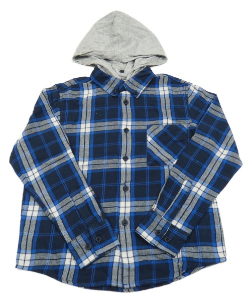 Tmavomdoro-šedá kostkovaná košile s šedou teplákovou kapucí Pocopiano