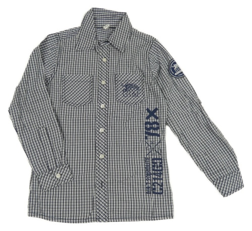 Bílo-tmavomodrá kostičkovaná košile s nápisem Yigga
