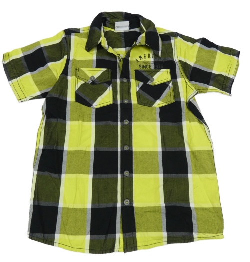 Černo-žlutozelená kostkovaná košile s nápisem Yigga